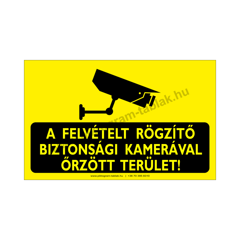A felvételt rögzítő biztonsági kamerával őrzött terület figyelmeztető piktogram tábla