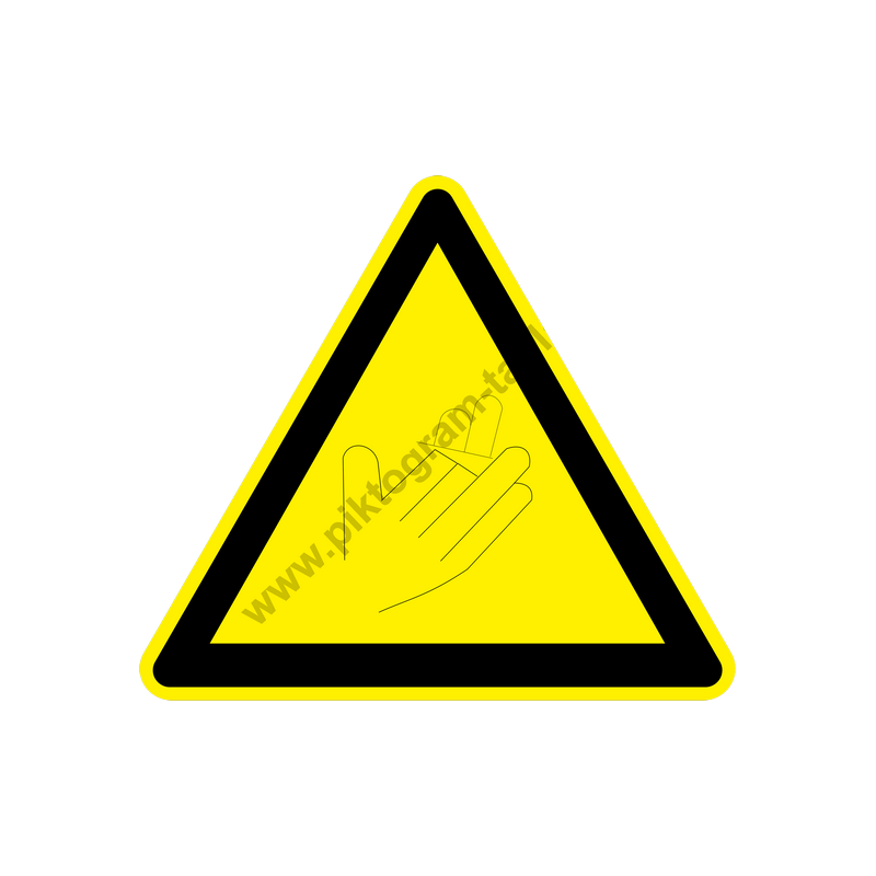 Ez a sárga-fekete figyelmeztető jelzés a kézsérülés kockázatára hívja fel a figyelmet. Használata ajánlott üzemekben, gyárakban, raktárakban, műhelyekben és minden olyan helyen, ahol mozgó gépek, szerszámok vagy éles tárgyak veszélyt jelenthetnek.