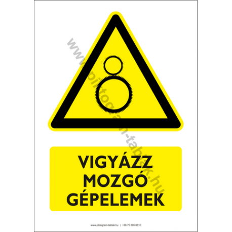 A „Vigyázz! Mozgó gépelemek” figyelmeztető piktogram tábla és matrica a balesetek megelőzését szolgálja olyan területeken, ahol gépek és berendezések mozgó alkatrészei komoly sérülésveszélyt jelentenek. A szabványos sárga-fekete szimbólum mindenki számára könnyen értelmezhető, és azonnal figyelmeztet a fokozott óvatosságra. Használata ajánlott gyártócsarnokokban, ipari üzemekben, műhelyekben, raktárakban és minden olyan helyen, ahol gépi berendezések működnek. A jól látható tábla és matrica segíti a munkavédelmi előírások betartását, valamint a biztonságos munkakörnyezet fenntartásához. Többféle méretben rendelhető, tartós hablemez táblaként vagy öntapadó matricaként. Igény esetén kétoldali ragasztócsíkkal is elérhető, amely lehetővé teszi a gyors, fúrás nélküli rögzítést.