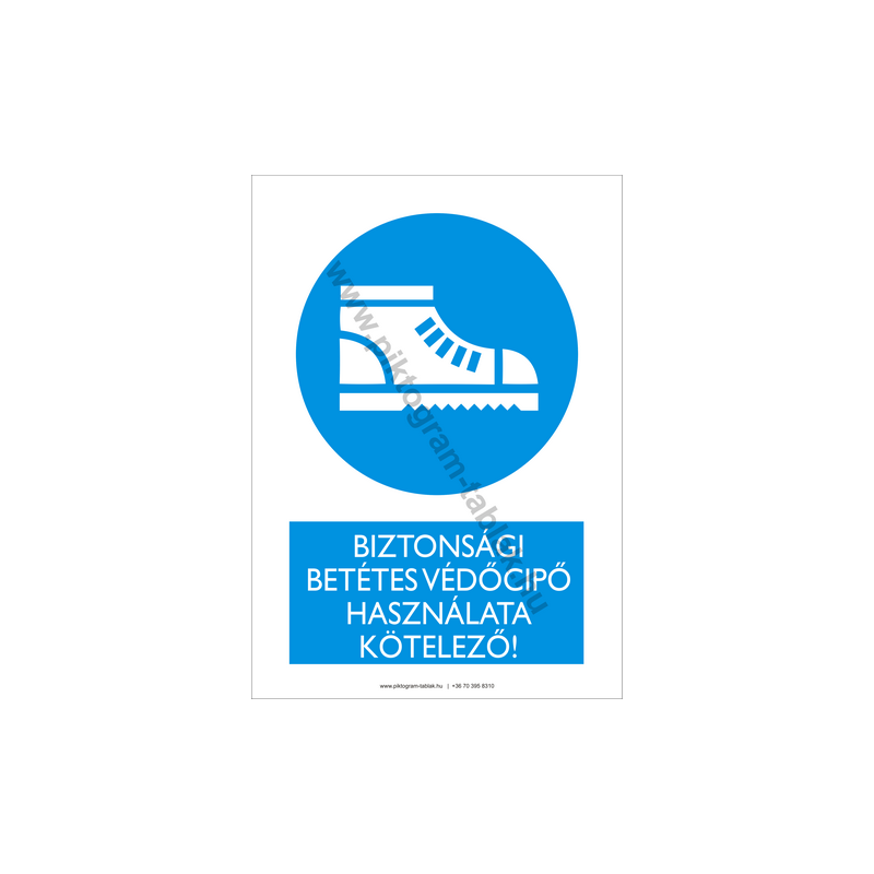 A biztonsági betétes cipő használata kötelező munkavédelmi piktogram tábla