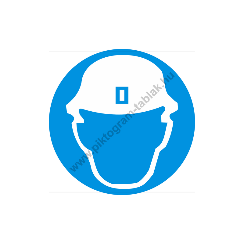 Ez a kék-fehér munkavédelmi jelzés a fejvédő viselését írja elő. Használata kötelező építkezéseken, ipari üzemekben, gyárakban, raktárakban és minden olyan munkahelyen, ahol leeső tárgyak vagy fejsérülés veszélye áll fenn.