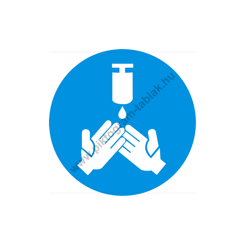 Ez a kék-fehér munkavédelmi jelzés a fertőtlenítő kézmosás kötelező elvégzését jelzi. Használata ajánlott élelmiszeriparban, egészségügyi intézményekben, laborokban és minden higiéniailag kiemelt területen.