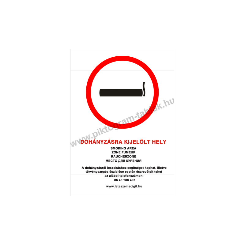 Ez a tűzvédelmi jelzés világosan mutatja, hol engedélyezett a dohányzás. A felirat 5 nyelven (magyar, angol, német, francia, olasz) szerepel, így nemzetközi környezetben, üzemekben, irodákban és közintézményekben is alkalmas.