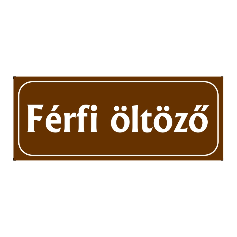 A „Férfi öltöző” piktogram tábla és matrica 25x10 cm méretben ideális megoldás a férfi öltözőhelyiségek bejáratának egyértelmű megjelölésére. A tábla letisztult, jól olvasható felirattal és nemzetközileg ismert piktogrammal készül, így segíti a gyors tájékozódást. Többféle színváltozatban is rendelhető – kék, barna vagy bordó háttérrel, fehér betűkkel –, hogy illeszkedjen az épület arculatához. Strapabíró, UV- és időjárásálló hablemezből, illetve öntapadó matricaként is elérhető. Beltéri és kültéri használatra egyaránt alkalmas. Igény esetén kétoldali ragasztóval is kérhető, a gyors, fúrás nélküli felszereléshez.