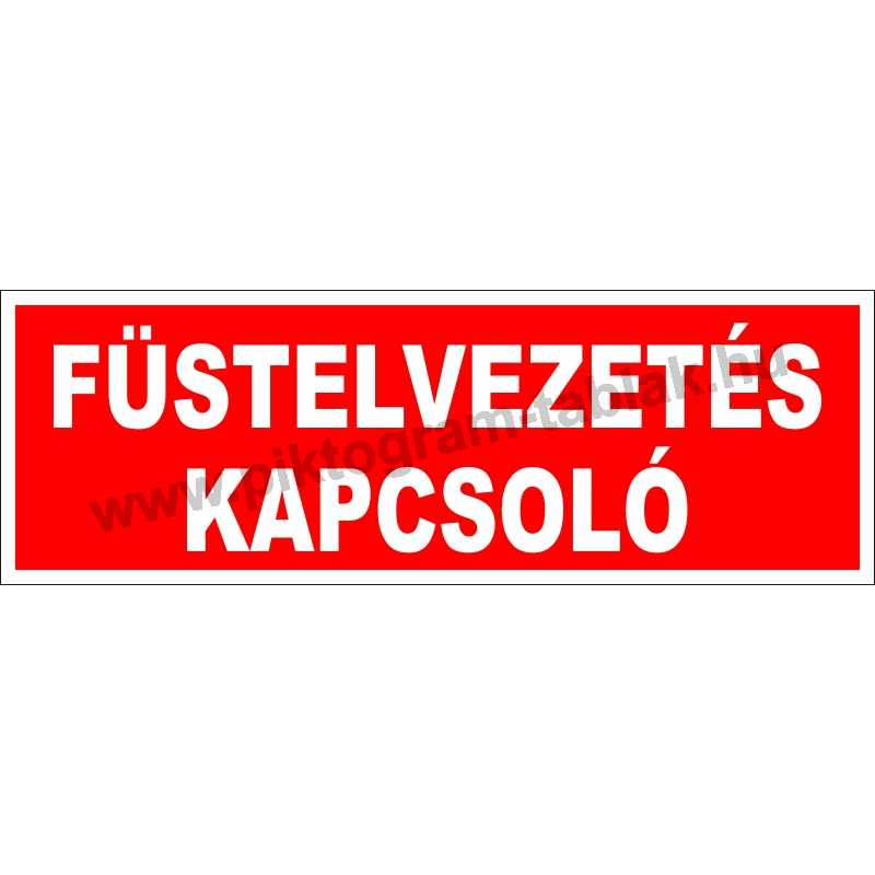 Ez a tűzvédelmi jelzés a füstelvezető kapcsoló hely mutatja. Utánvilágító kivitelben áramszünet esetén is jól látható, így segíti a gyors beavatkozást. Kérhető hablemez táblaként és öntadó matricaként, többféle méretben.